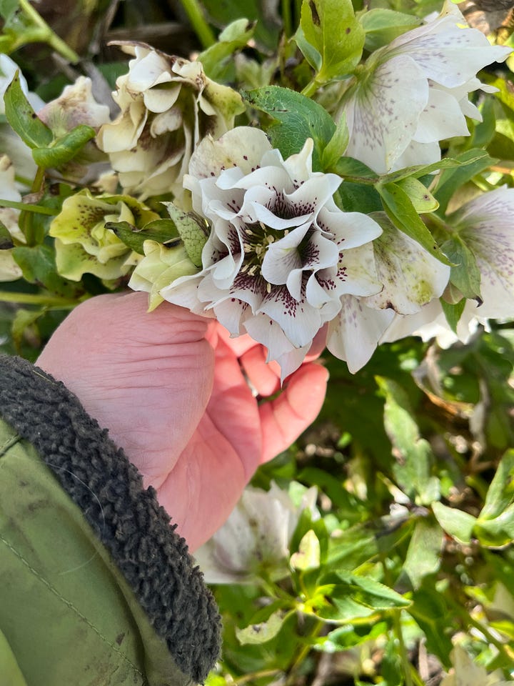 The butterfly ranunculus are flying in the tunnel, and the ones outside look even healthier, but they have not produced blooms yet - I’m hoping that the inside/outside and the corms I held back on planting till February will extend my season somewhat. The February starts are going into crates outside - they probably won’t have as many flowers as the tunnel ones, but I’m hoping for a later crop. I’m going to need lots of flowers for my residency!